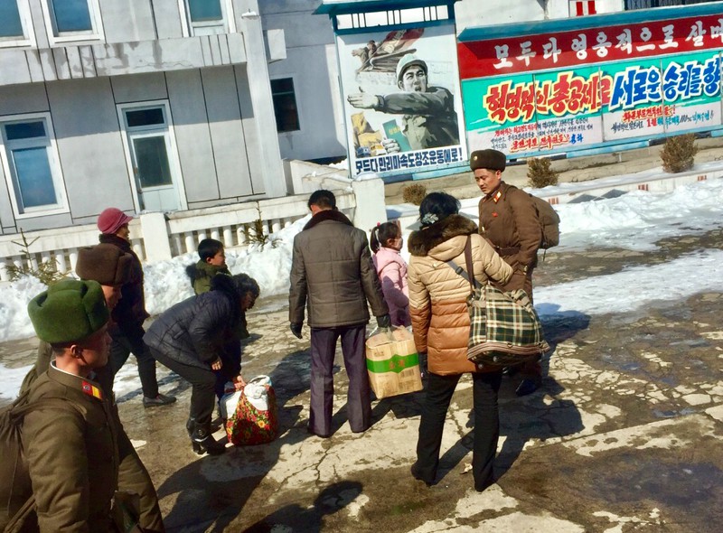 Pompo - một ga xe lửa khác ở Nam Hàm Kinh. Luôn có một lực lượng quân sự lớn canh gác tại tất cả các ga đường sắt ở Triều Tiên. |