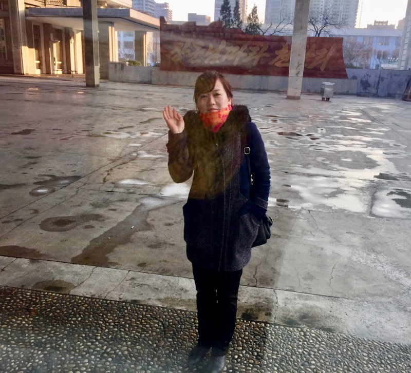 Hướng dẫn viên ở Bình Nhưỡng vẫy tay tạm biệt chúng tôi quả cửa kính - chia tay theo nghĩa đen của nó, vì chúng tôi sẽ không bao giờ có thể trò chuyện với cô ấy bằng thư, internet, kể cả điện thoại. |